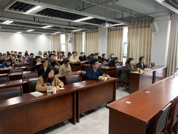 为学习贯彻党的十九届六中全会精神,深刻理解和把握党的百年奋斗重大成就,11月30日,必赢766net手机版在建艺馆313室举行中心组理论学习(扩大)会议,邀请马克思主义学院副院长魏荣教授来院作专题辅导报告。学院领导班子成员、各党支部委员和部分学生党员聆听了报告。