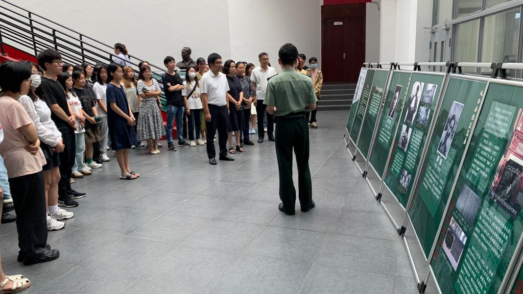 参观现场,师生们纷纷聚集在展板前,认真地听讲解,看展览,感受革命先烈们坚定的革命理想信念、大无畏的革命英雄主义精神以及敢于斗争敢于胜利的英雄气概。